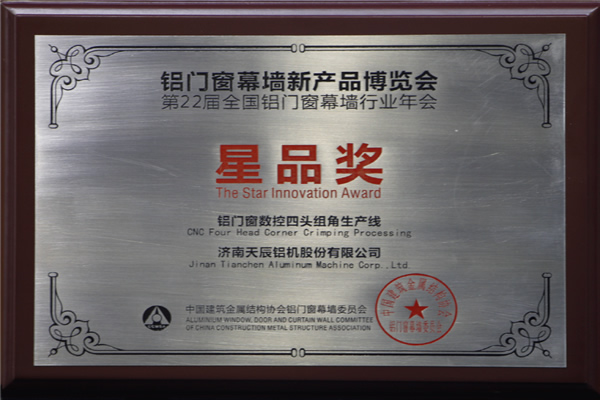 天辰股份憑借業內領先的品牌知名度和信譽度,此次展出的高端數控四頭組角生產線、鋁模板數控切割鋸等設備,獲得了廣泛的關注和贊譽。數控四頭組角生產線以其先進的技術及超高生產效率獲得了客戶和專家的一致好評,在第二屆門窗幕墻年度星品評選中,勇奪設備類“星品獎”。