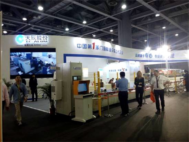 ????????? 2015年3月18日—20日,第21屆全國鋁門窗幕墻行業年會暨鋁門窗幕墻新產品博覽會在廣州保利世貿博覽館隆重舉行。濟南天辰鋁機股份有限公司攜最新產品亮相本屆展會,展位號:2號館2512。作為行業內門窗幕墻加工設備領域的領軍企業,天辰股份首次展示了新型高端數控雙料鋸切中心、五金鉸鏈自動生產線以及新型鋁門窗液壓重型組角機,成為了本屆展覽會的一個亮點,展會首天就得到了行業領導的肯定及廣大客商的好評!