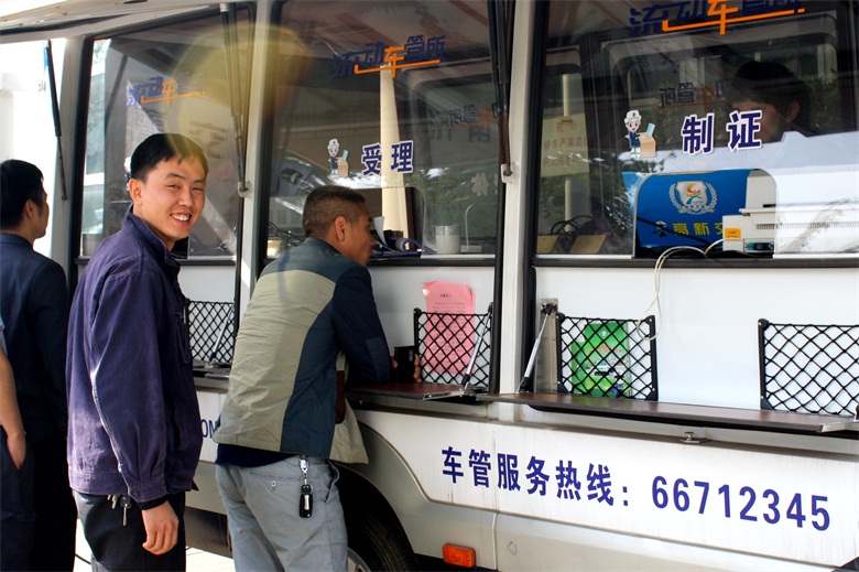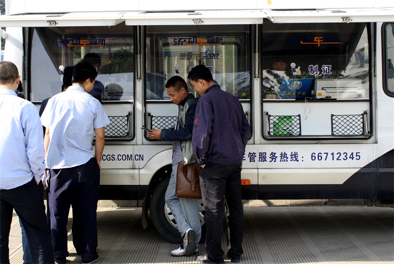 10月15日上午9點30分,服務車開進濟南天辰鋁機股份有限公司,現場為企業員工辦理駕駛證、行駛證和機動車年檢業務。據統計,“流動車管所”共為企業150余名員工辦理了駕駛證年檢業務,發放宣傳材料、解答咨詢100余次。