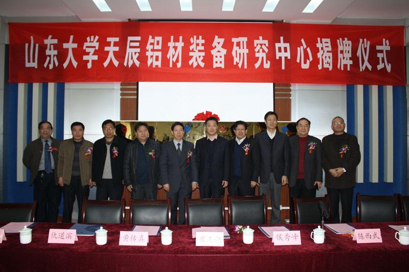 2012年12月26日上午,濟南天辰鋁機制造有限公司與山東大學工程機械學院產學研合作揭牌儀式在濟南天辰電教室隆重舉行。 出席揭牌儀式的嘉賓有:高新區管委會副主任崔志強、高新區科技局局長陳西武、山東大學機械工程學院黃傳真教授,仇道濱教授,呂