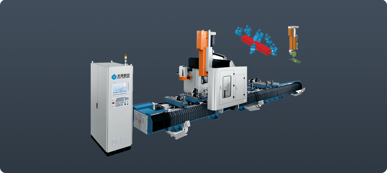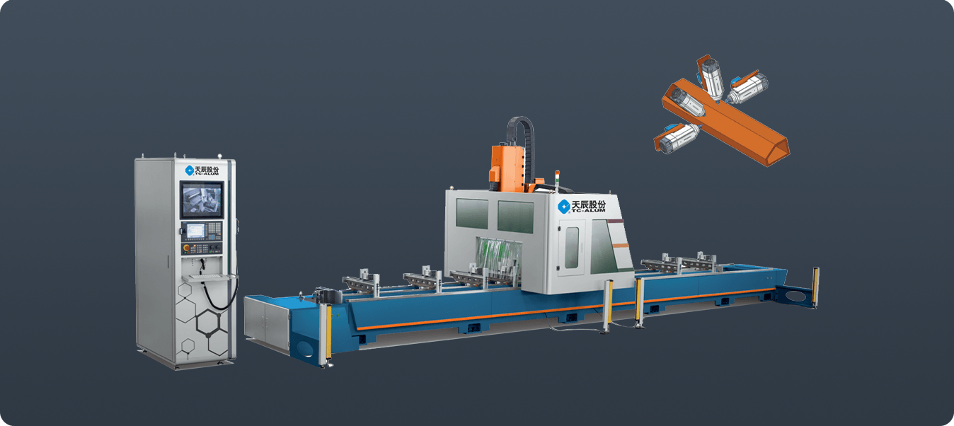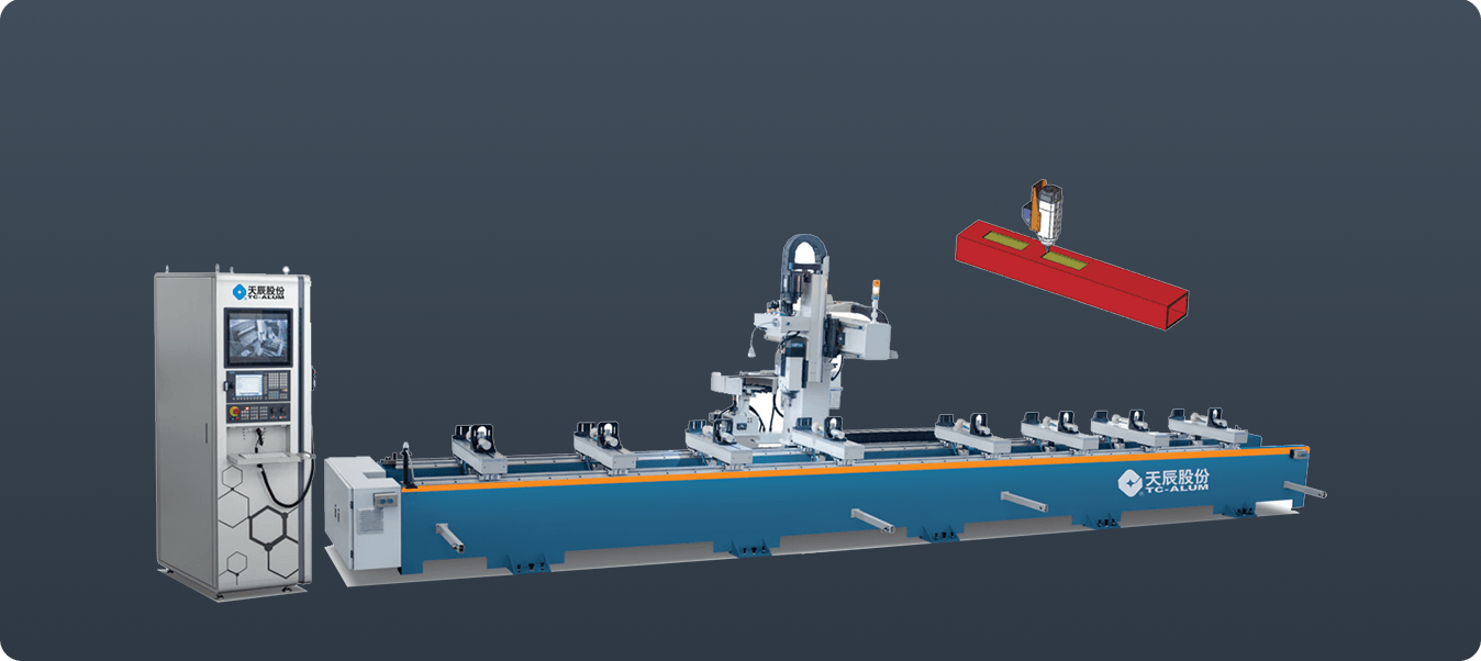適用于鋁門窗幕墻及工業鋁的鉆孔、銑削等加工,一次裝夾可完成多面的復合加工,自動化程度高;左右分布式布局,不停機交互式上料,可實現高效率生產。